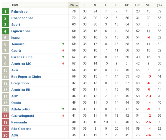 O Campeonato Brasileiro da Série B terminou neste sábado (30/11). O Palmeiras já havia se sagrado campeão por antecipação. Também já haviam garantido o acesso à Série A de 2014, com antecedência, Sport e Chapecoense-SC, sendo que este último estreará na elite nacional. Na última rodada, o Figueirense foi o 4º e último clube a garantir a promoção.