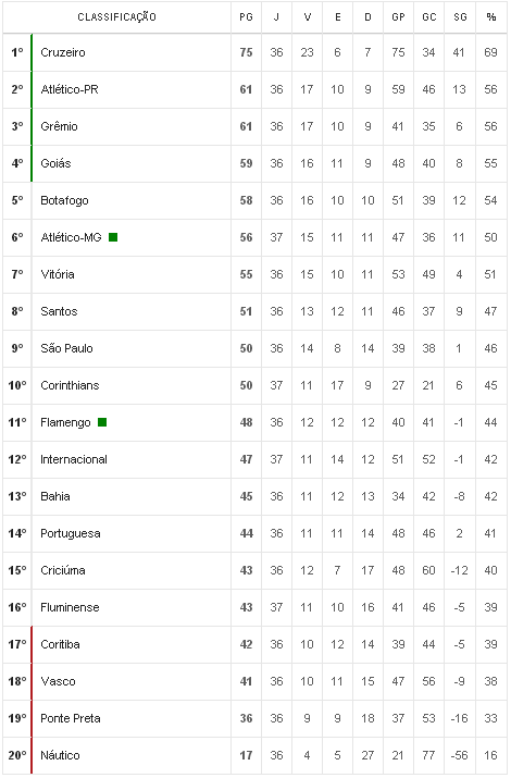 É difícil, mas é possível. O empate entre Corinthians e Inter, na noite deste sábado (30/11), deixou o time gaúcho 6 pontos e 1 vitória à frente do Vasco. Desta forma, o Gigante da Colina, se vencer todos os seus jogos e seus adversários diretos perderem pontos, pode não só fugir do rebaixamento como ainda terminar o Brasileiro na 12ª colocação.