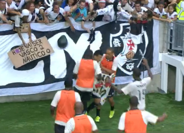 Não foi somente "Mister M", o foclórico torcedor do Vasco, que agiu de forma certeira ao prever um gol de Bernardo contra o Náutico. Caíque, conhecido por sua fiel folha de arruda, acertou em cheio o placar da partida. Como se pode notar na imagem abaixo, o vascaíno levou um cartaz com a frase: 'Hoje vai ser Vasco 2 e Náutico 0'.