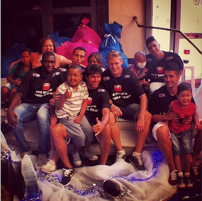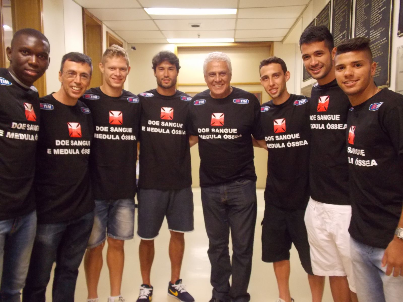 Após o treino desta quarta-feira, em São Januário, alguns jogadores do elenco cruz-maltino visitaram crianças internadas ou em tratamento no Instituto Nacional de Câncer (INCA), no Centro do Rio. Os atletas tiraram fotos e usaram até uma camisa do Vasco com pedido de doação de sangue e medula óssea.
