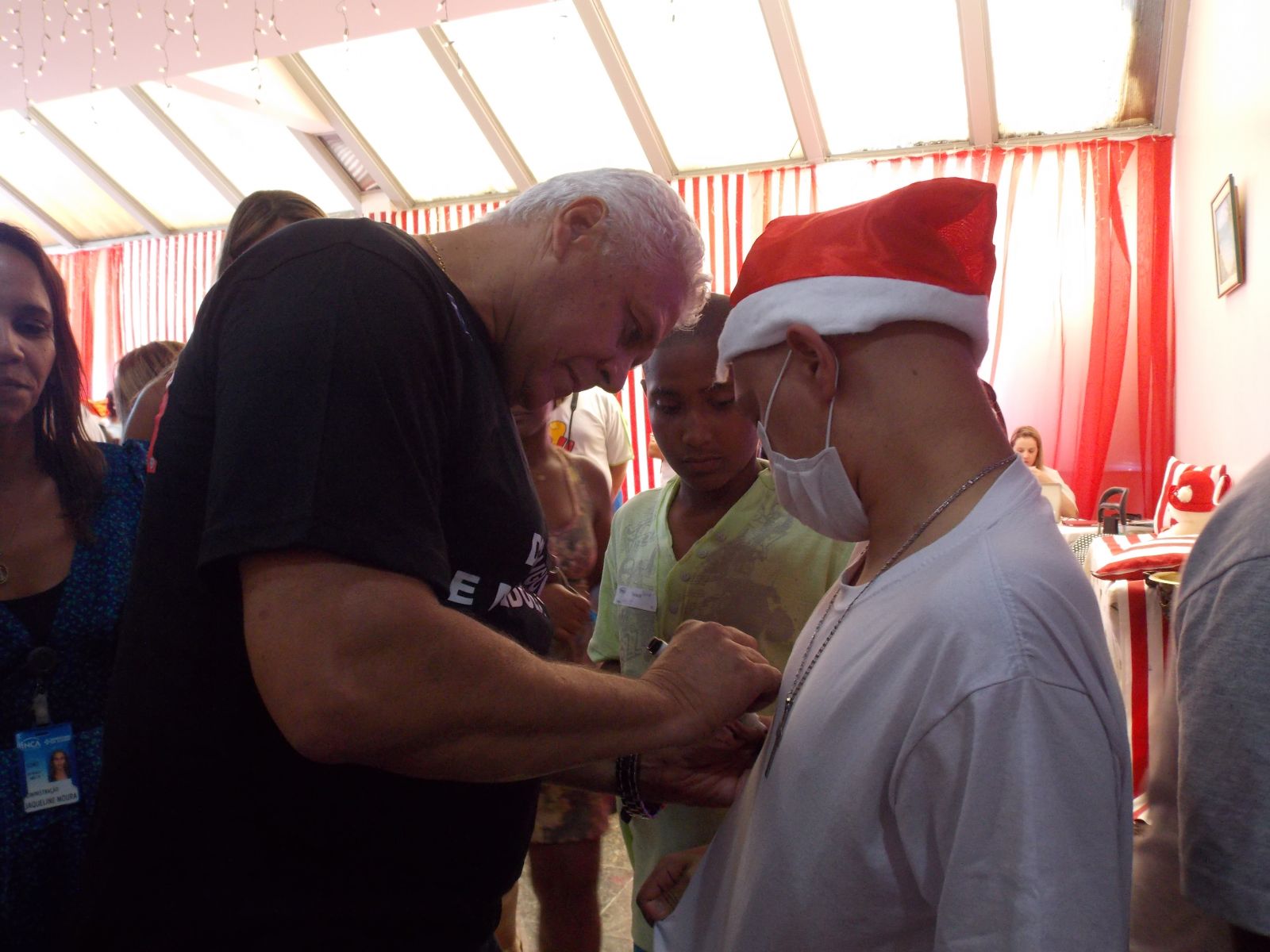 Na tarde desta quarta-feira (4/11), o presidente do Vasco da Gama Roberto Dinamite e os jogadores do elenco profissional: Fillipe Soutto, Henrique, Jomar, Luan, Marlone e Pedro Ken marcaram presença na festa para celebração do Natal no Instituto Nacional de Câncer – INCA, localizado no Centro do Rio de Janeiro.