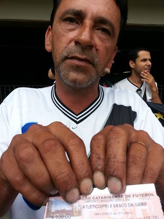 "Minha situação financeira está complicada, está parecida com a do Vasco. Mas não ia tirar R$ 100 da boca do meu filho para comprar ingresso. Não tinha mordida de caranguejo que me tirasse desse jogo", declarou ao site GloboEsporte.com. E mostrou confiança na permanência do Vasco na Série A: "Me ferrei no mangue para prestigiar meu time. Se continuar vai ser como um título. Eu acredito muito no meu Vasco".