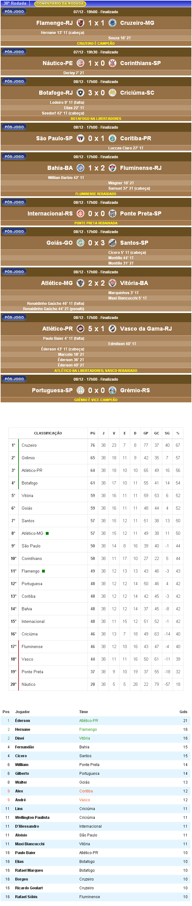 Com 12 gols, André ficou na 9ª colocação entre os artilheiros. Éderson, do Atlético-PR, foi o goleador máximo da competição com 21 gols.