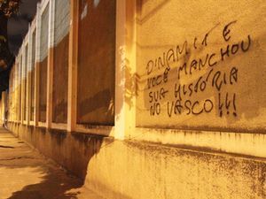 O muro do estádio São Januário foi pichado esta noite, após a derrota que sacramentou o rebaixamento do Vasco. Em uma das frases do vandalismo se via a frase: "Dinamite, você manchou a história do Vasco". Em outra, "Acabou a mamata". Para proteger o patrimônio do clube, seguranças estão no entorno do estádio.