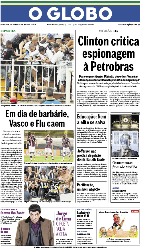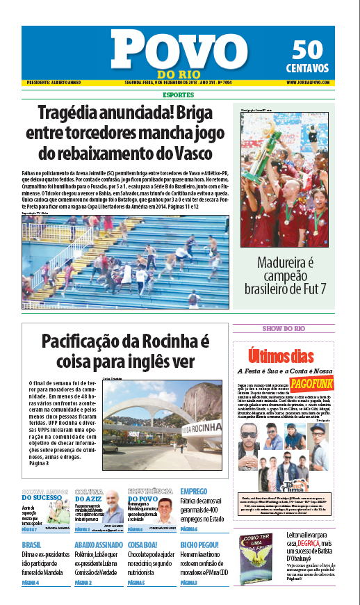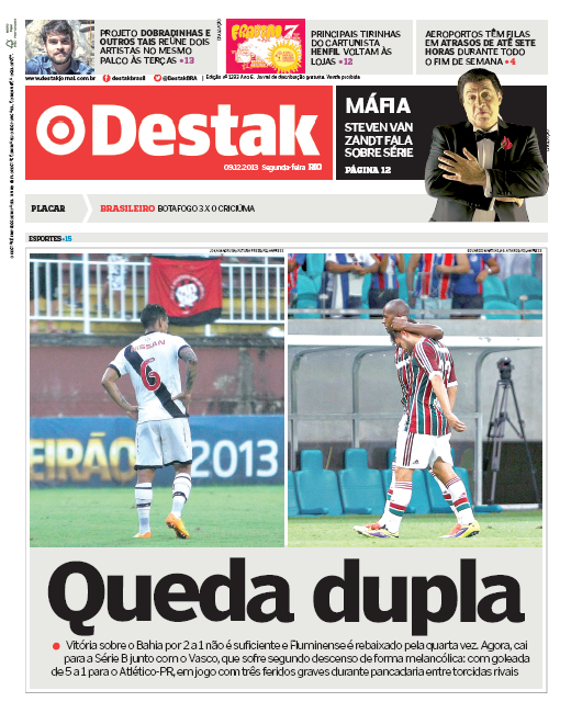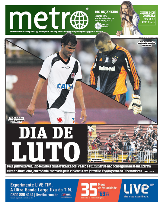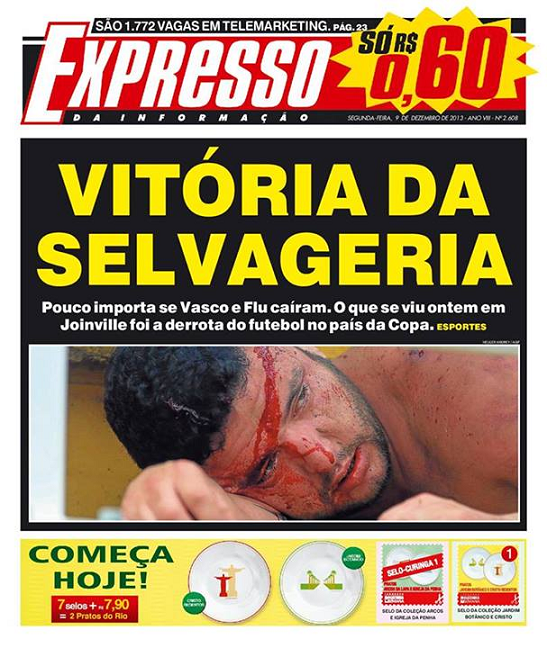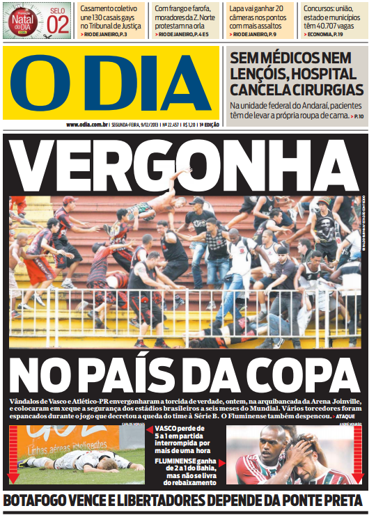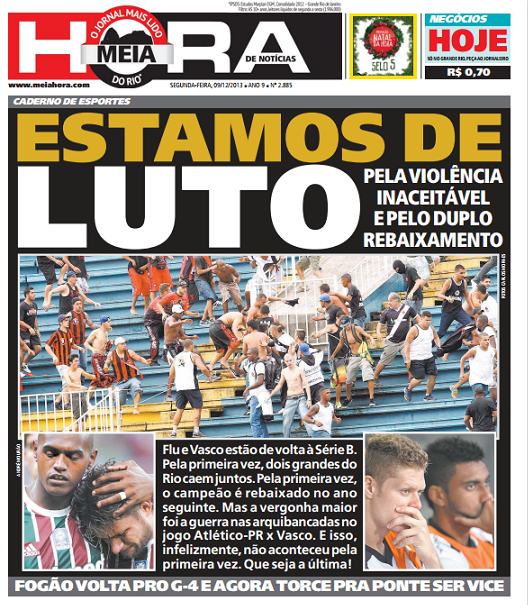 Veja como a imprensa do RJ destacou a briga de torcidas em Joinville e o rebaixamento do Vasco