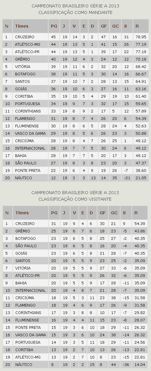 O Vasco teve a 14ª melhor campanha do Campeonato Brasileiro como clube mandante e a 16ª como visitante. No geral, o Gigante da Colina ficou no 18º lugar.