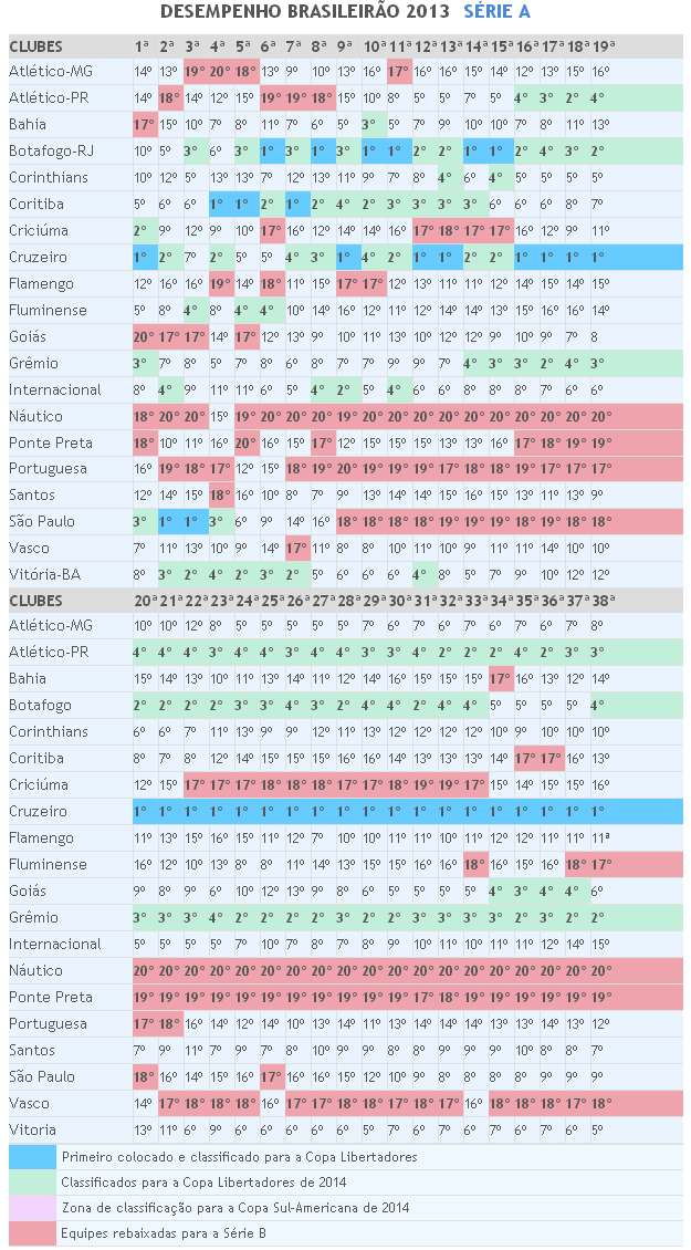 O Vasco permaneceu 17 das 38 rodadas do Campeonato Brasileiro 2013 na zona do rebaixamento. No 1º turno foi apenas uma rodada, mas, no 2º turno, foram 16 das 19 rodadas.