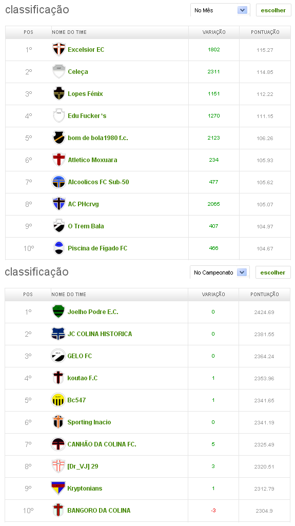 Confira, abaixo, a classificação final (do mês e do campeonato) da Liga NETVASCO OFICIAL. Para ver mais colocações, clique aqui. A NETVASCO agradece aos 5.700 vascaínos que se inscreveram na liga e participaram do Cartola FC em 2013.