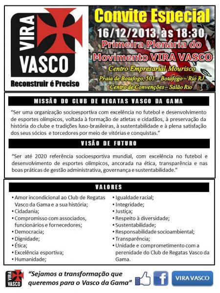 Movimento Vira Vasco fará sua 1ª plenária no dia 16/12 às 18h30 em Botafogo e convida vascaínos
