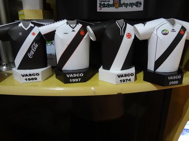 As peças abaixo foram produzidas por Christian Gama, morador de Belford Roxo (RJ). Ele se especializou na montagem de miniaturas em papel de camisas históricas do Vasco e de outros times e seleções de todo o mundo.