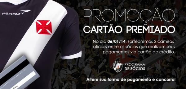 Mais uma promoção para os sócios adimplentes que pagam a mensalidade via cartão de crédito. No dia 6 de janeiro, serão sorteadas duas (02) camisas oficiais do Vasco da Gama. Para aqueles que fazem o pagamento via boleto e desejam participar, basta alterar a forma de pagamento até o dia 5 de janeiro, acessando a área exclusiva de sócio no site www.vasco.com.br/socio ou entrando em contato pelo telefone (21)2159-0909.