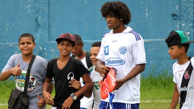 ![]() William Barbio, do Bahia, com a criançada |