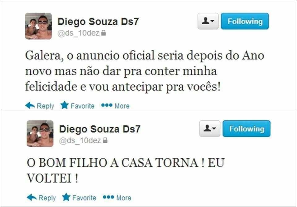 A equipe do programa Só dá Vasco apurou com a assessoria do jogador Diego Souza que ele não possui nenhuma conta no twitter e muito menos no Facebook. Portanto, vascaínos, não se iludam e não sejam enganados pelo que os fakes do jogador postam nas redes sociais.