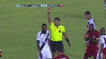 O atacante Marquinhos era a válvula de escape do Vasco, que só chegava pelo lado esquerdo do campo e continuava sendo pressionado pelo Audax-SP, que seguia melhor. Os cariocas até subiram de produção, mas era o Audax quem estava mais próximo do primeiro gol. Até que aos 33 minutos, o volante Biel fez falta dura em Marquinhos, levou o segundo cartão amarelo e acabou expulso de campo. Com a vantagem numérica o Vasco melhorou um pouco, mas os times não chegaram às redes e a partida foi para o intervalo empatada em 0 a 0.
