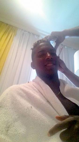 Não é só Bernardo que publica fotos de suas mudanças no visual nas redes sociais. O atacante Thalles caprichou no corte de cabelo e postou a foto no Facebook, com o comentário: "No hotel dano um tapa rs".