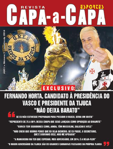 JOSÉ FERNANDO HORTA, ou, simplesmente, FERNANDO HORTA, para o jornalista que sabe extrair boas respostas de um entrevistado de primeira linha, é uma das melhores entrevistas que, hoje, existem, nesta cidade. Foi na nossa primeira das três revistas que, hoje, editamos, a OLHO VIVO (na época, ainda, um jornal), que ele concedeu uma entrevista histórica, por conta da qual acabou processado por toda diretoria do Vasco, ao chamá-la de antro de quadrilheiros. Agora, com esta entrevista exclusiva, que ele concede à CapA-A-CapA ESPORTES, no seu primeiro número, ele muda, até, a capa desta nossa publicação, que estava programada noutra direção.