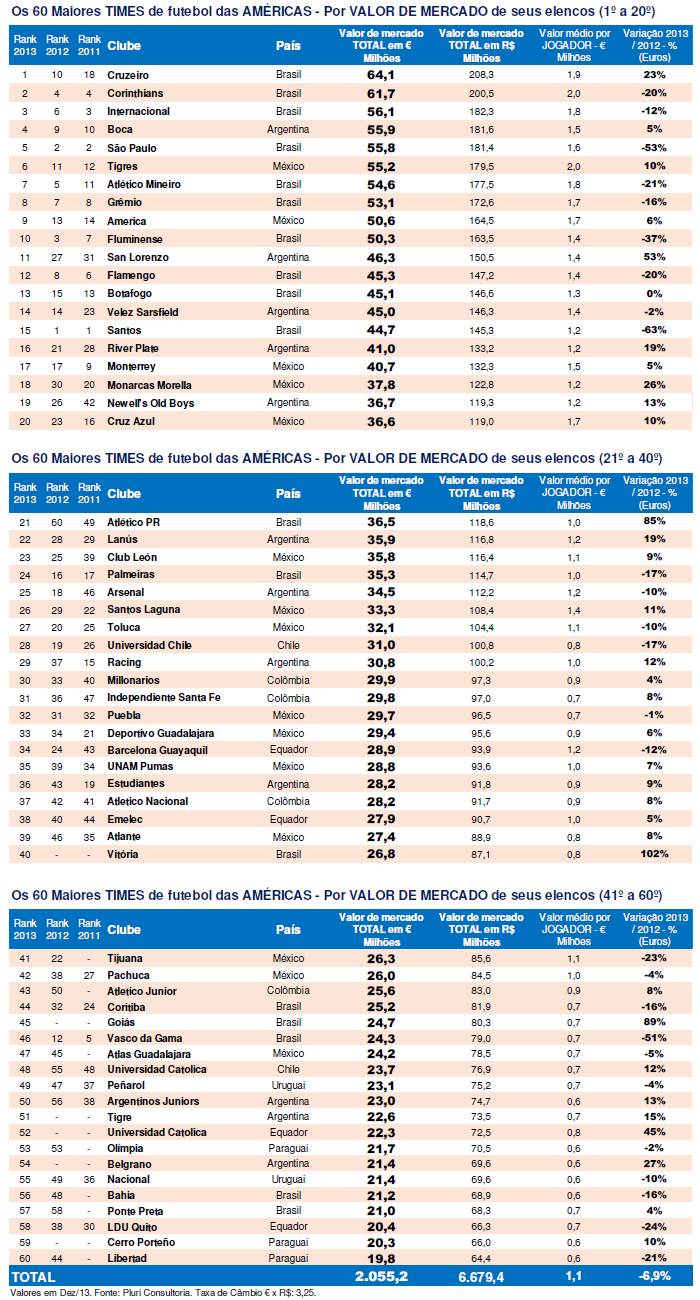 Estudo da Pluri Consultoria aponta o elenco do Vasco da Gama como o 46º mais valioso da América do Sul e México. Para saber detalhes do trabalho, clique aqui.