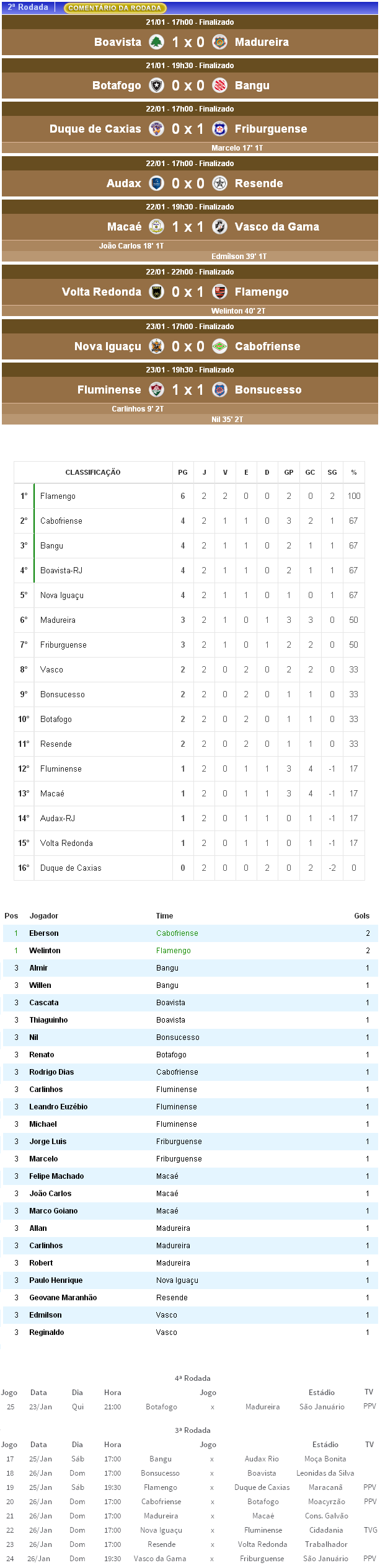 Fonte: NETVASCO (texto), Futebol Interior (resultados, autores dos gols), UOL (classificação), Globo Online (artilharia), FFERJ (próximos jogos)
