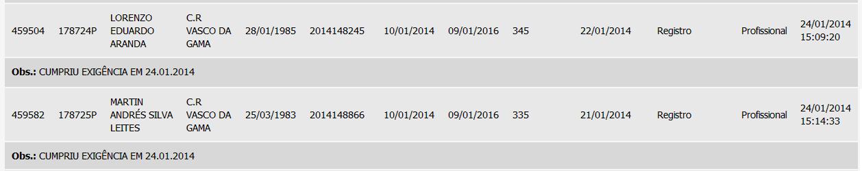 Os nomes de Martín Silva e de Eduardo Aranda já aparecem sem nenhuma pendência tanto no BIRA da FFERJ quando no BID da CBF. Sendo assim, ambos já estão aptos a estrear pelo Vasco.