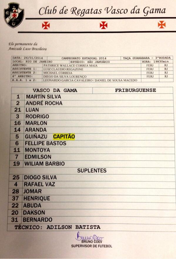 Confira escalação oficial do Vasco; Martín Silva e Aranda estreiam