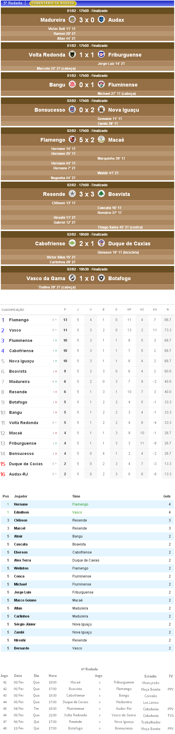 Fonte: NETVASCO (texto), Futebol Interior (resultados, autores dos gols), GloboEsporte.com (classificação), Globo Online (artilharia), FFERJ (próximos jogos)