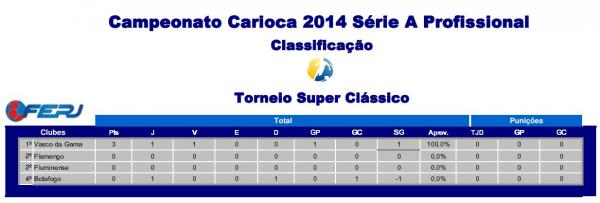 Vencedor do jogo contra o Botafogo, no último domingo (02/02), por 1 a 0, o Vasco pulou na frente na disputa pelo título do Torneio Super Clássicos 2014.