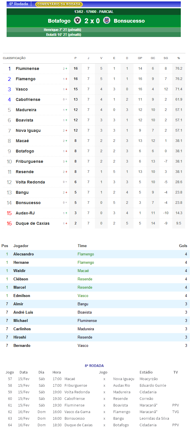 Fonte: NETVASCO (texto), Futebol Interior (resultados, autores dos gols), GloboEsporte.com (classificação), Globo Online (artilharia), FFERJ (próximos jogos)