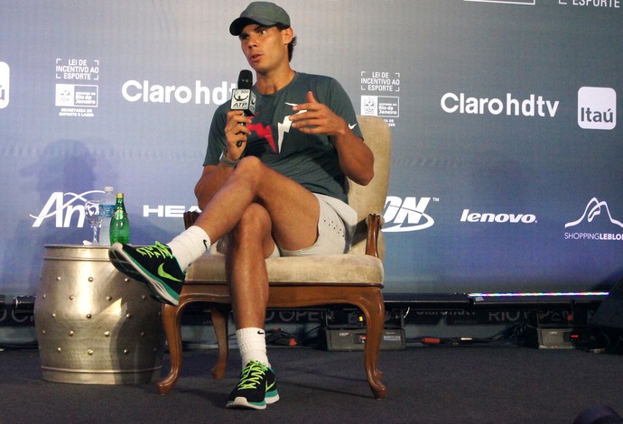 Nadal se mostrou à vontade. Apesar do atraso de 30 minutos para o início da coletiva, respondeu todas as perguntas dos jornalistas e fez questão de mostrar sua simpatia pelo Brasil. O espanhol esteve em solo verde e amarelo duas vezes. E nas duas oportunidades foi campeão: na Costa do Sauípe, na Bahia, em 2005 e no Aberto do Brasil, em São Paulo, no ano passado.