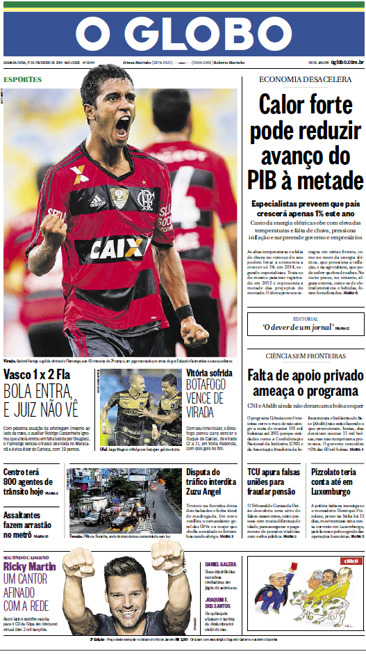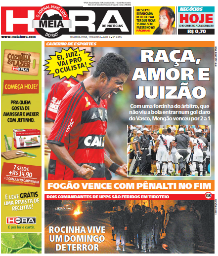 Veja como a imprensa do RJ destacou a derrota 'no apito' do Vasco no clássico