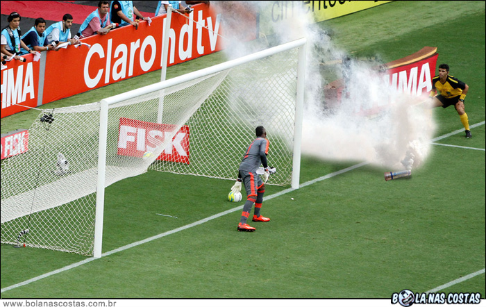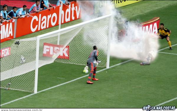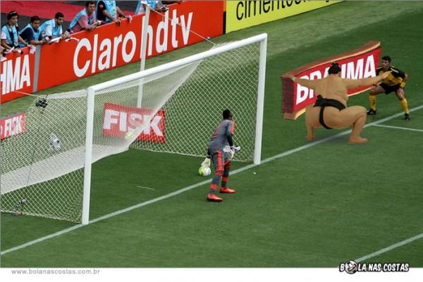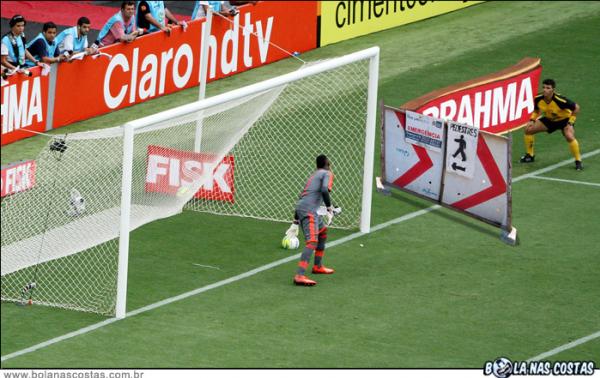 Parece que o ábitro não conseguiu enxergar a bola dentro do gol. Bola nas Costas revela o que pode ter atrapalhado a visão do pobre árbitro.