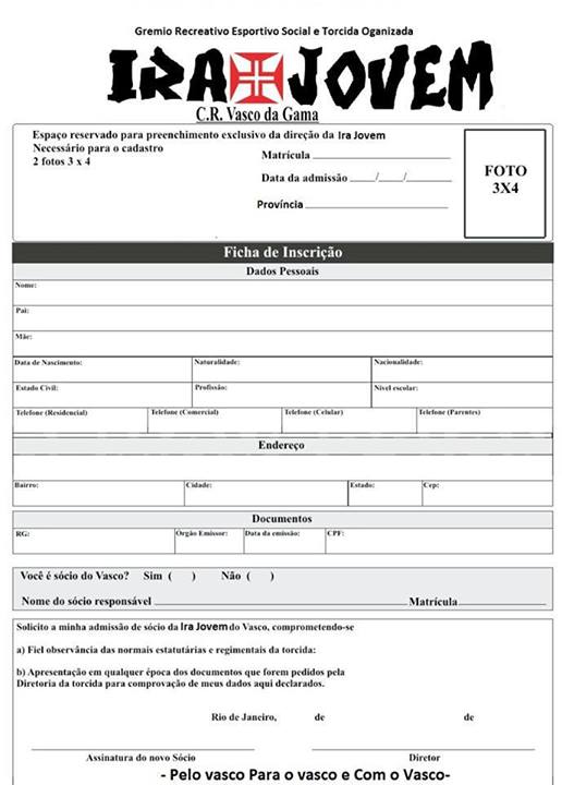 Preenchimento da ficha ao lado (estará disponível para os interessados nos dias de jogos do Vasco)