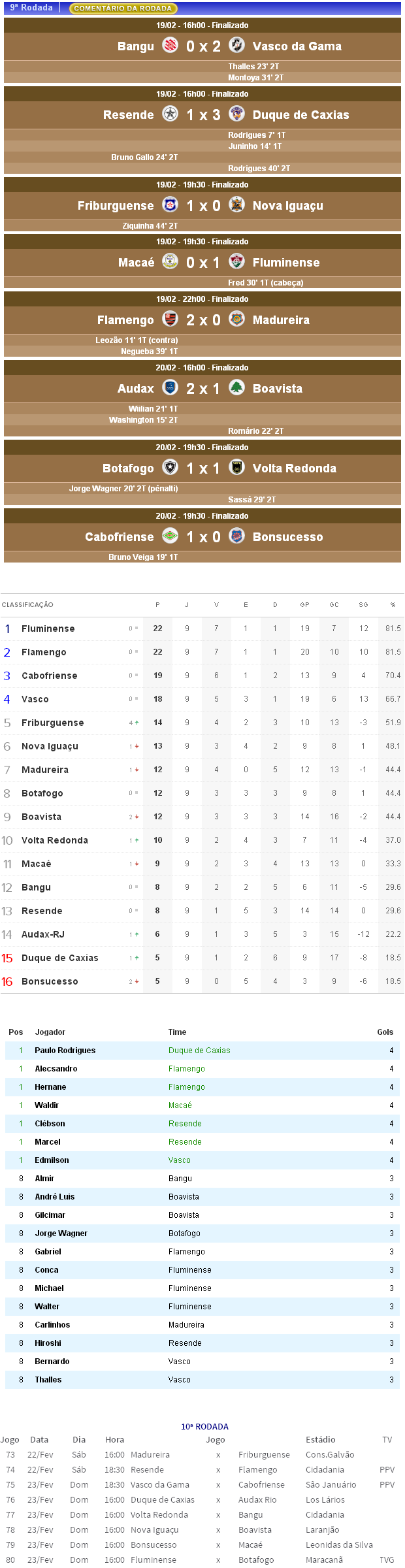 Fonte: NETVASCO (texto), Futebol Interior (resultados, autores dos gols), GloboEsporte.com (classificação), Globo Online (artilharia), FFERJ (próximos jogos)