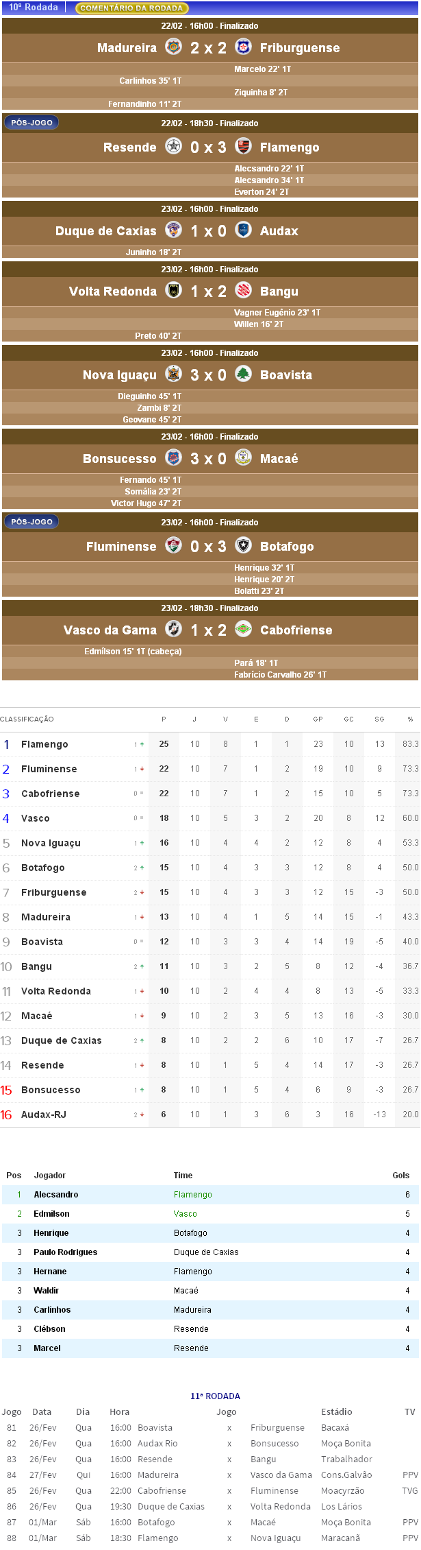 Fonte: NETVASCO (texto), Futebol Interior (resultados, autores dos gols), GloboEsporte.com (classificação), Globo Online (artilharia), FFERJ (próximos jogos)