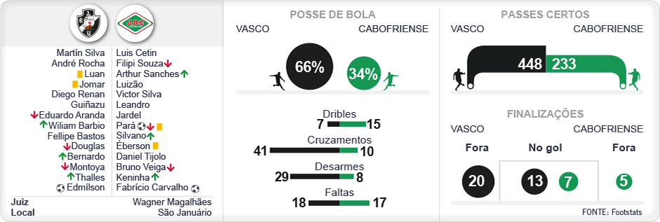 Confira estatísticas de Vasco 1 x 2 Cabofriense