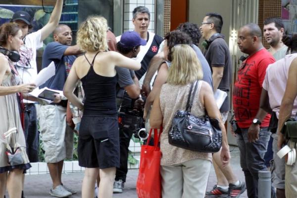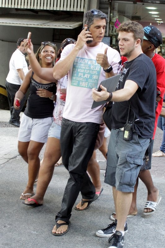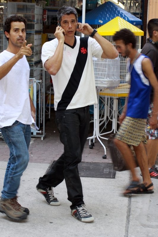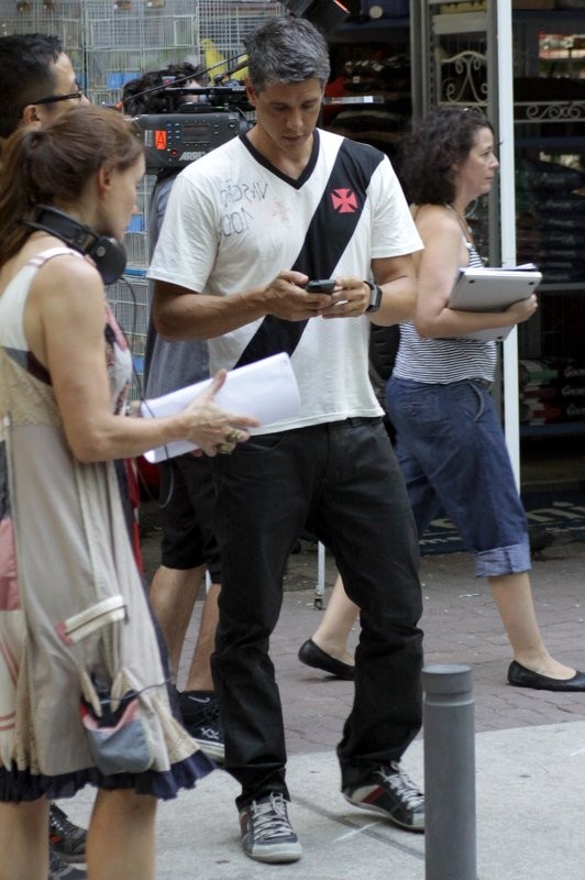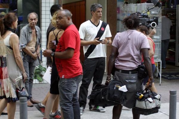 Márcio Garcia embarcou em uma tarde de gravação, na segunda-feira (24). Usando camiseta do Vasco, o ator participou de uma sequência na Tijuca, zona norte do Rio de Janeiro. O que não faltou foram fãs curiosos acompanhando os bastidores.