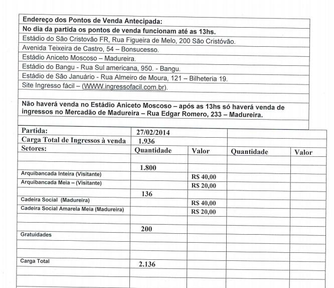 Informações sobre ingressos para Madureira x Vasco
