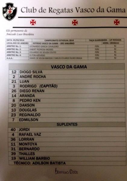 Confira escalação oficial do Vasco; Edmilson e Reginaldo formam dupla de ataque