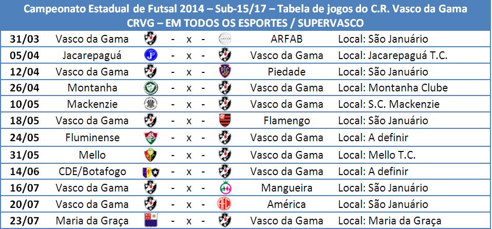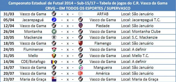 O Vasco da Gama já sabe quem serão os seus adversários nas campanhas dos Campeonatos Estaduais 2014, das categorias sub-15 e sub-17.