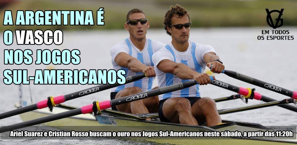 Os remadores vascaínos Ariel Suarez e Cristian Rosso já têm data e hora para debutarem nos Jogos Sul-Americanos, maior competição poliesportiva sul-americana e que envolve 43 esportes. Santiago, capital do Chile, sedia a edição de 2014 da competição quadrienal. Em virtude de ter apenas cinco barcos inscritos, o double skiff, em cuja prova os vascaínos são atuais finalistas tanto nas Olimpíadas (quarto lugar em Londres-2012) quanto no Campeonato Mundial (quinto em Chungju-2013), terá apenas a final, a ser realizada no sábado (08/03), a partir das 11:20h (horário local coincide com o horário de Brasília), no Centro de Alto Rendimiento Laguna Curauma. Vale ressaltar que as competições de remo não são na capital chilena, mas em Valparaíso. A cerimônia de abertura será realizada nesta sexta-feira (07/03), quando as competições também começam. As provas de remo acontecem de sexta-feira a domingo.