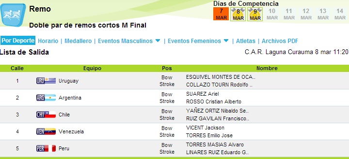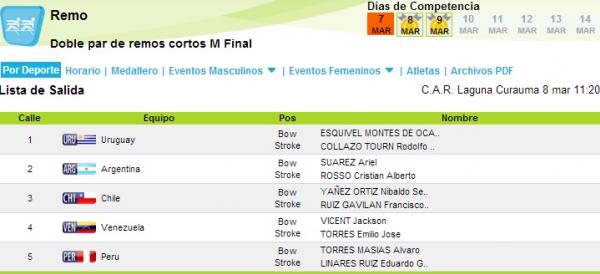 Confira o balizamento do double skiff nos Jogos Sul-Americanos (sábado às 11:20h):
