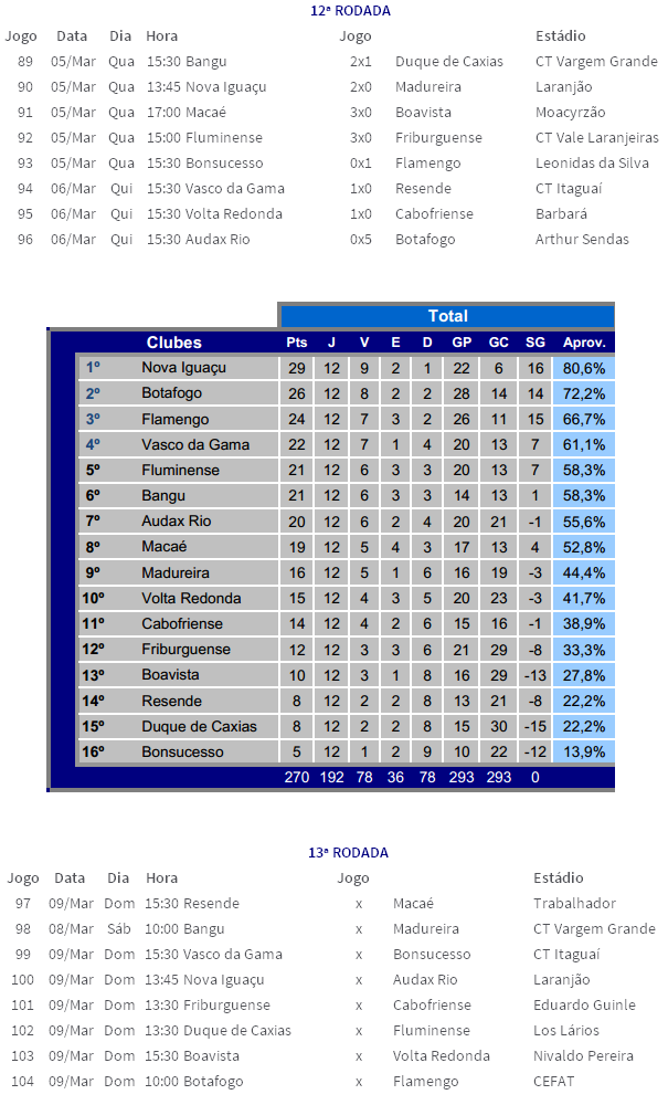 Fonte: NETVASCO (texto), FFERJ (tabela, classificação)