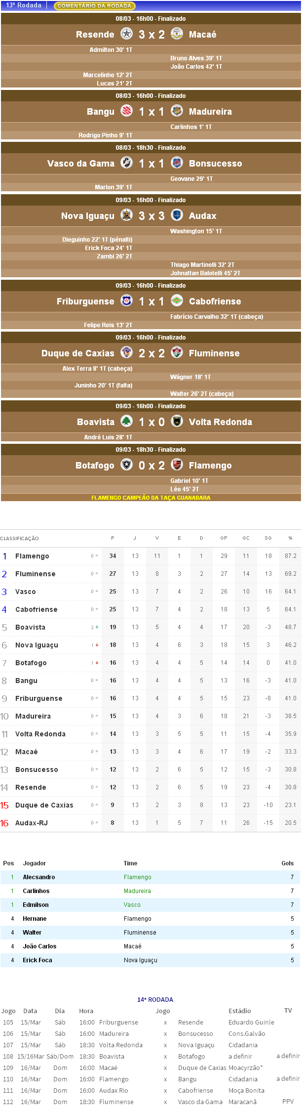 Fonte: NETVASCO (texto), Futebol Interior (resultados, autores dos gols), GloboEsporte.com (classificação), Globo Online (artilharia), FFERJ (próximos jogos)