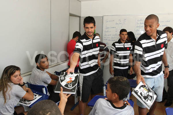 ncontro de gerações. O presente e o futuro do Vasco se encontraram na manhã desta quinta-feira (13/3) no Colégio Vasco da Gama. Após o treino do elenco profissional, os jogadores Henrique, Lorran, Luan, Jordi e Thalles foram presentear os alunos da escola pelo aniversário de 10 anos, data que foi comemorada no último sábado. A Credeal, empresa fornecedora de material escolar, doou cadernos para todos os 180 estudantes do colégio.