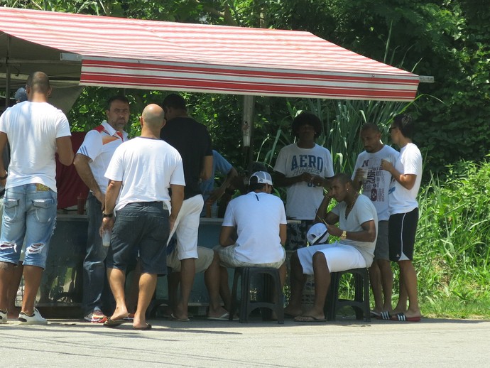 Uma cena curiosa marcou o treino do Vasco nesta sexta-feira. Após a atividade no CFZ, alguns jogadores do elenco se reuniram em uma barraquinha de pastel e caldo de cana na rua do centro de treinamentos para conversar. Nomes como Fellipe Bastos, Guiñazu, Reginaldo, Montoya e William Barbio participaram da confraternização.