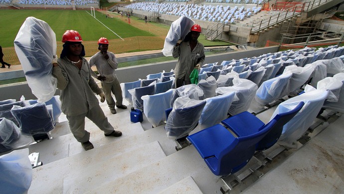 A expectativa é que no jogo entre Mixto e Santos, boa parte das cadeiras já estejam instaladas. Após a Copa do Mundo, a capacidade da Arena Pantanal aumenta para 44 mil torcedores. No ano passado, a licitação da compra das cadeiras teve problemas com o Ministério Público Estadual . Orçada em R$ 570 milhões, a Arena Pantanal começou a ser construída em abril de 2010 e apresenta 97% das obras prontas.