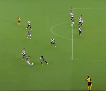 O gol de empate do Fluminense contra o Vasco neste domingo, no Maracanã, foi ilegal. O atacante Fred estava impedido no momento do cruzamento do lateral Bruno. Confira na imagem abaixo:
