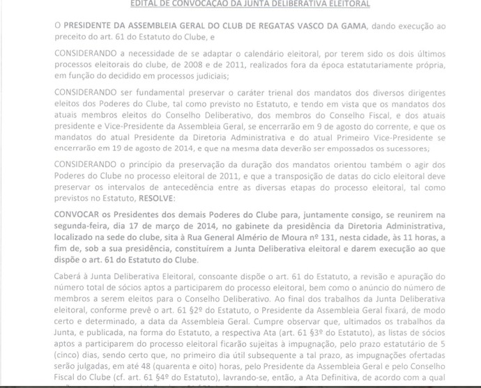 Às 11 horas desta segunda-feira, cinco homens sentam para começar a decidir o futuro do Vasco. Após convocação do presidente da Assembleia Geral, Olavo Monteiro de Carvalho, o presidente do clube Roberto Dinamite, Eurico Miranda, que preside o Conselho de Beneméritos, Hélio Donin (Conselho Fiscal) e Abílio Borges (Conselho Deliberativo) se reúnem em São Januário em encontro que promete alimentar de vez a guerra política vascaína. Na mesa, Olavo deve colocar a polêmica proposta de vetar os sócios que entraram em abril do ano passado, mesmo se somente definir a data do pleito deste ano em uma segunda reunião. O voto da maioria aprova ou desaprova a intenção do presidente da Assembleia Geral do clube de São Januário. A assessoria de imprensa do Vasco comunicou, após o clássico contra o Fluminense, que o clube estará fechado, sem acesso à imprensa e de torcedores, justamente por causa da misteriosa reunião.