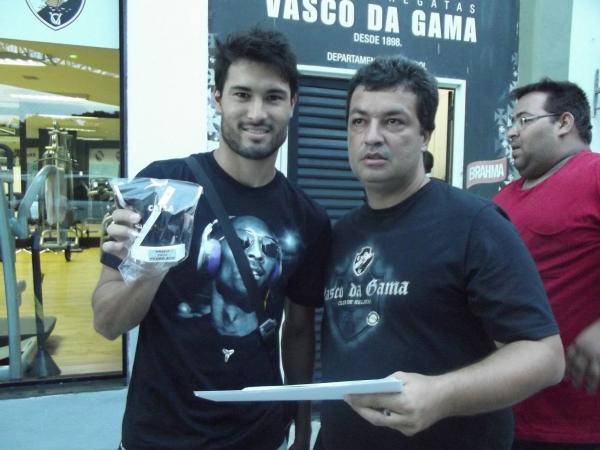 Após homenagear Mauro Galvão e algumas jogadoras da equipe sub-17 de futebol feminino do Vasco, o torcedor Christian Gama de Castro voltou ao Estádio de São Januário para presentar alguns atletas do elenco profissional do Gigante da Colina. Após o treinamento realizado na tarde da última quinta-feira (20/03), o apaixonado vascaíno entregou algumas camisas em miniatura para atletas e membros da comissão técnica.
