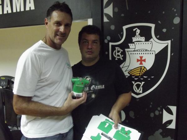 - Ele me presenteou com uma mini-camisa de 1997. Eu tenho uma dessa guardada até hoje. Eu joguei com esse mesmo tipo de camisa na Libertadores de 98. Foram dois títulos importantes para o Vasco, o Brasileiro e a Libertadores. Estou tendo o prazer de receber essa lembrança. Ela vai ser guardada com muito carinho, pois foram momentos bons que vivi no Vasco. Era uma época boa e com grandes times. Tínhamos um timaço em 97. Fiquei muito contente com esse presente e com essa lembrança. Ela vai guardada na minha estante. É uma recordação muito legal. Agradeço de coração - disse o ídolo.