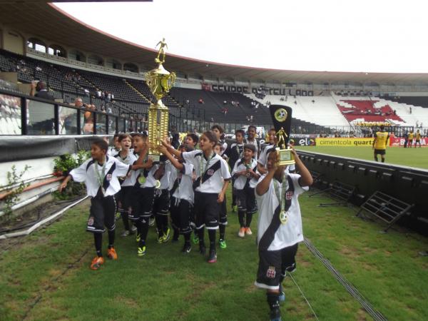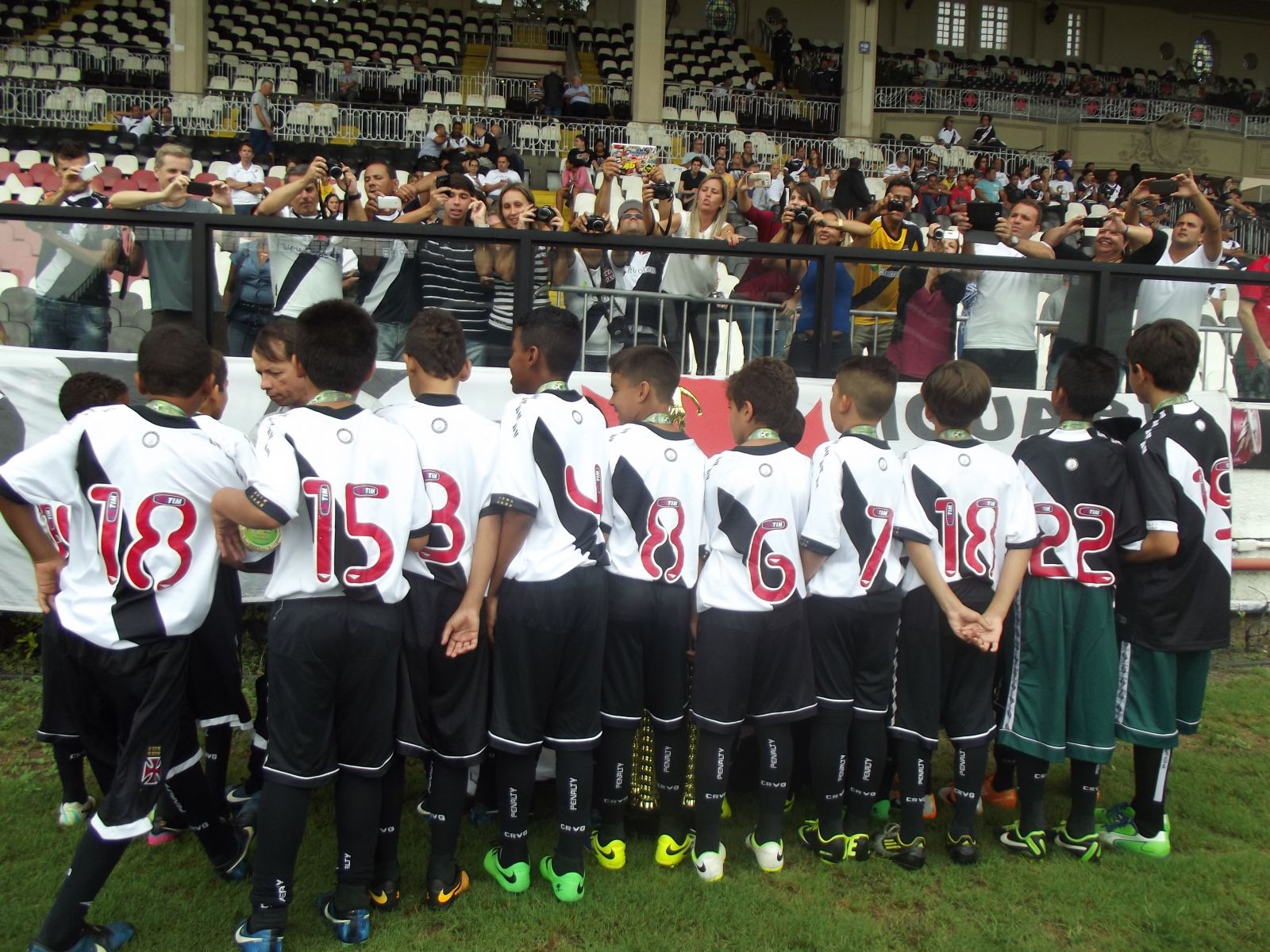 O domingo (23/03) foi de emoção para algumas crianças das categorias de base do Vasco. Os atletas que fazem parte do time pré-mirim festejaram no gramado de São Januário a inédita conquista da Copa Cidade Verde, competição realizada no mês de janeiro na cidade gaúcha de Três Coroas, Rio Grande do Sul. Os campeões foram recebidos com enorme carinho pelo torcedores que marcaram presença no Caldeirão para o jogo do elenco profissional contra o Duque de Caxias.